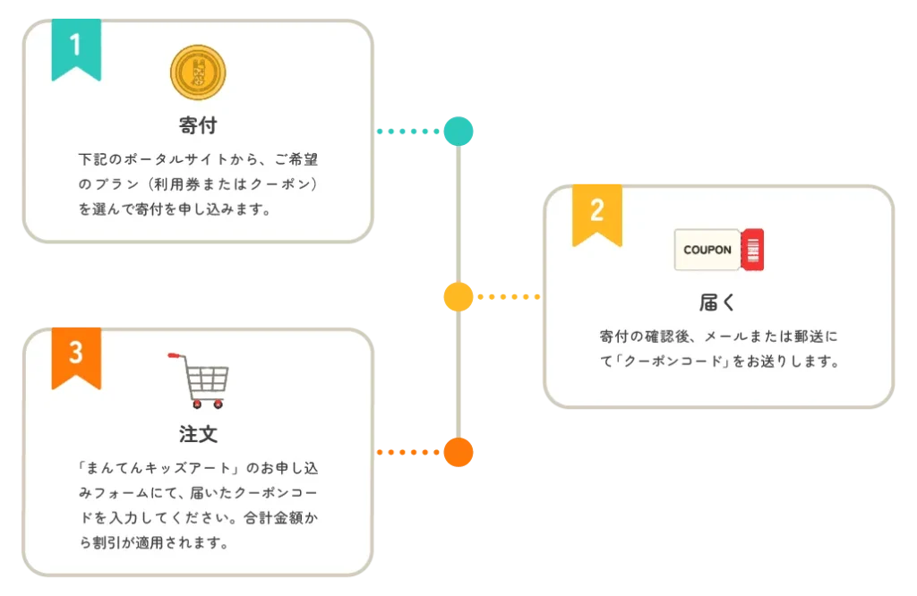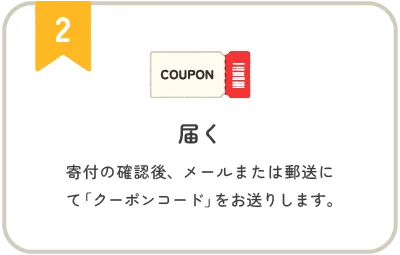「あと3万円分寄付できるな」といった場合に便利な、割引クーポンです。Webサイトでのお申し込み時にクーポンコードを入力することで、差額分のみをクレジットカード等でお支払いいただきます。