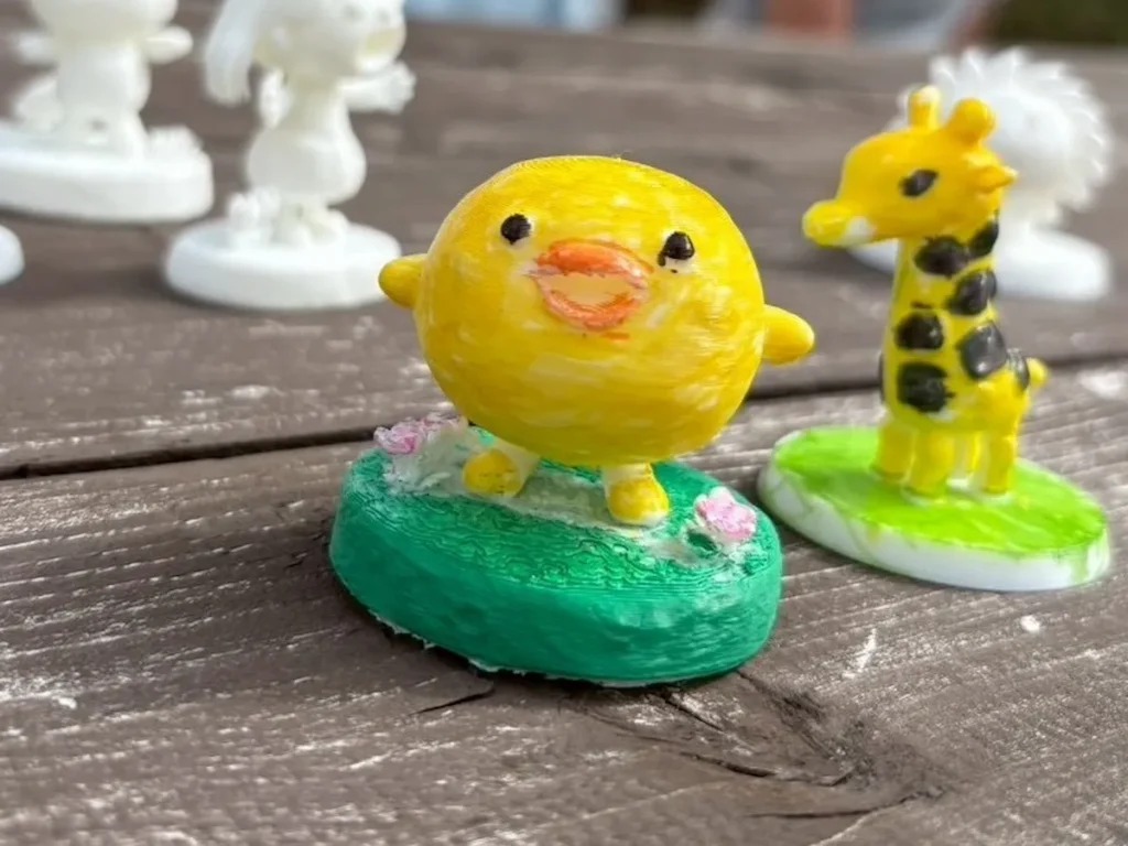 もう1種類のフィギュアは「ホワイト」で作成いたします。真っ白なキャンバスに色を乗せるように、市販のアクリルペンなどを使って、お子さまと一緒に色塗りに挑戦できます。